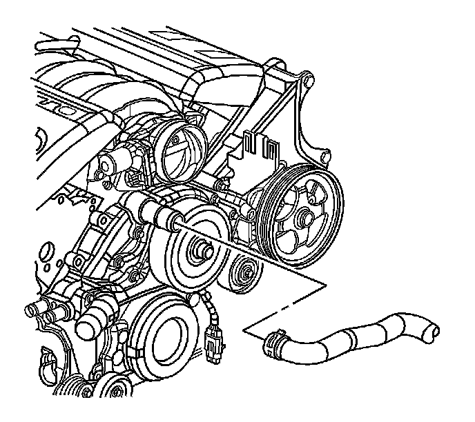 5. Disengage tension on the radiator inlet hose clamp at the water pump using J 38185 .