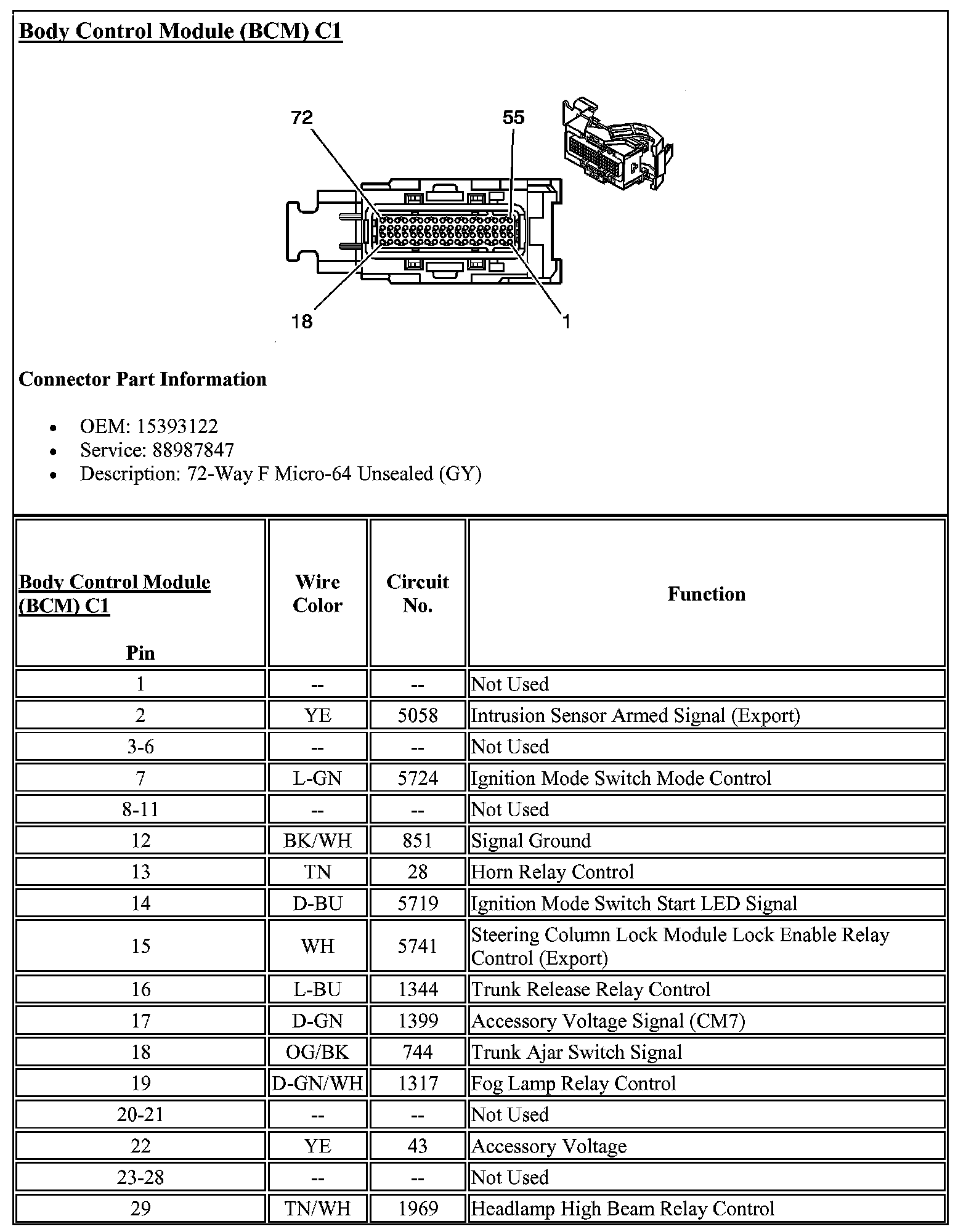 Body Control Module Connector C1 (Part 1):