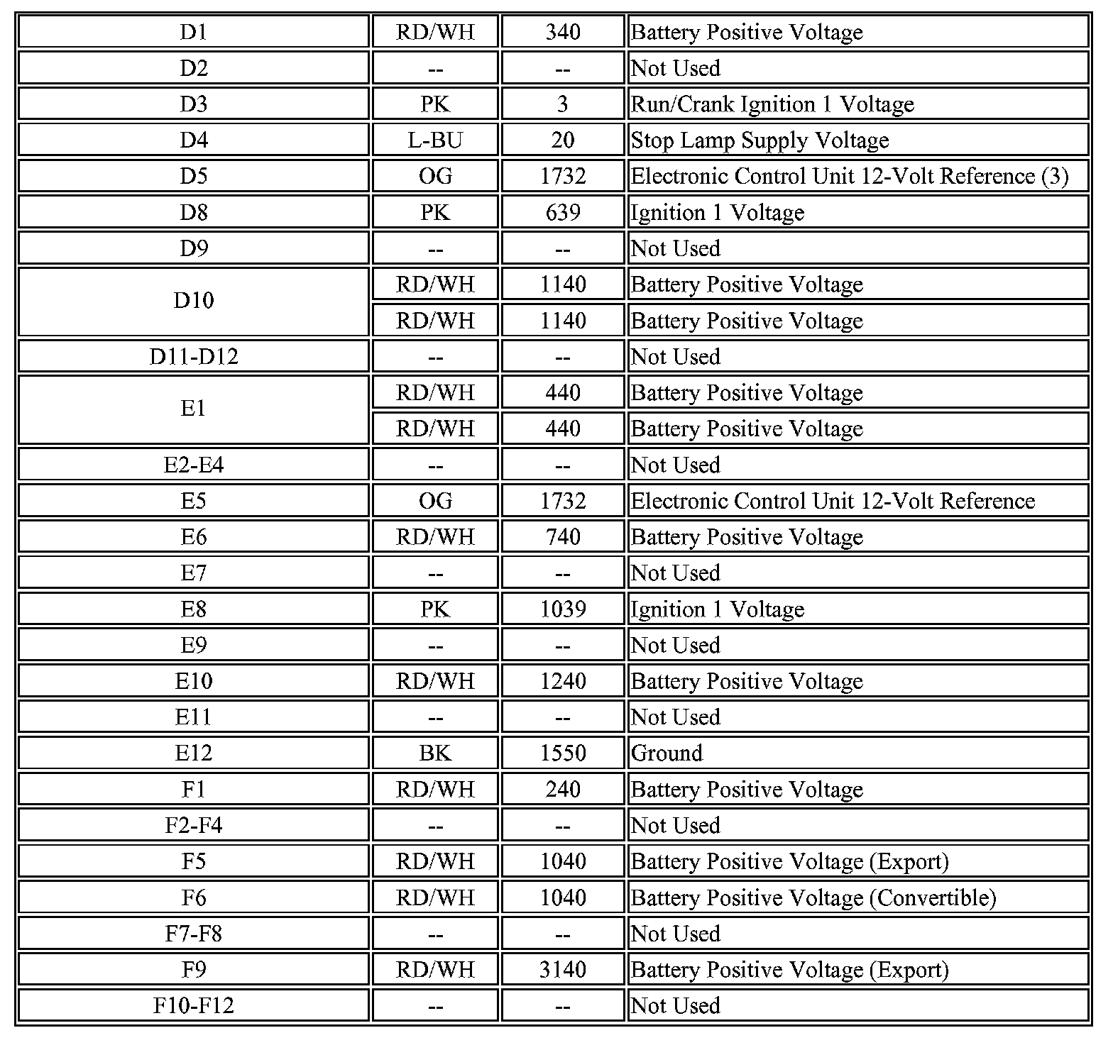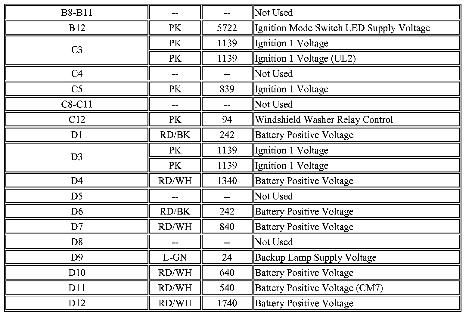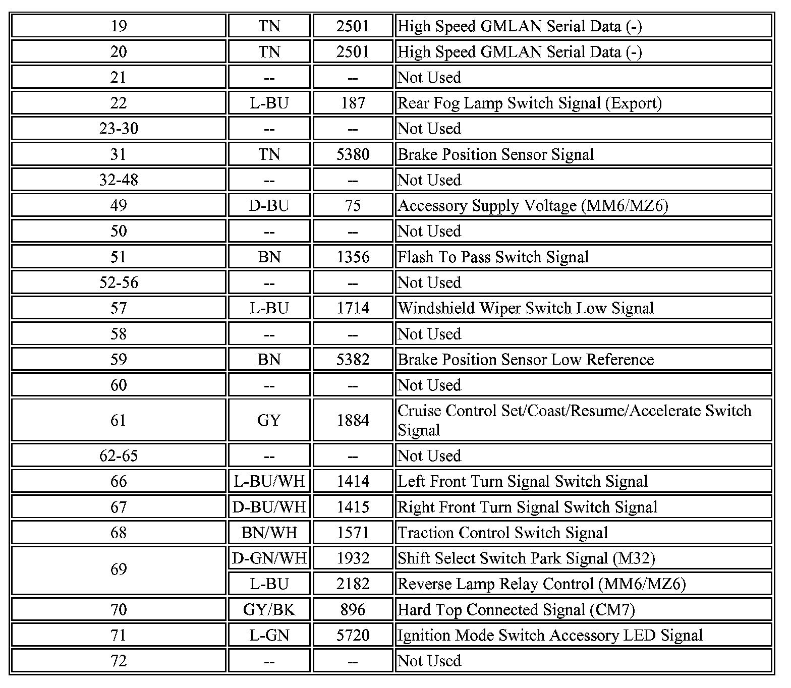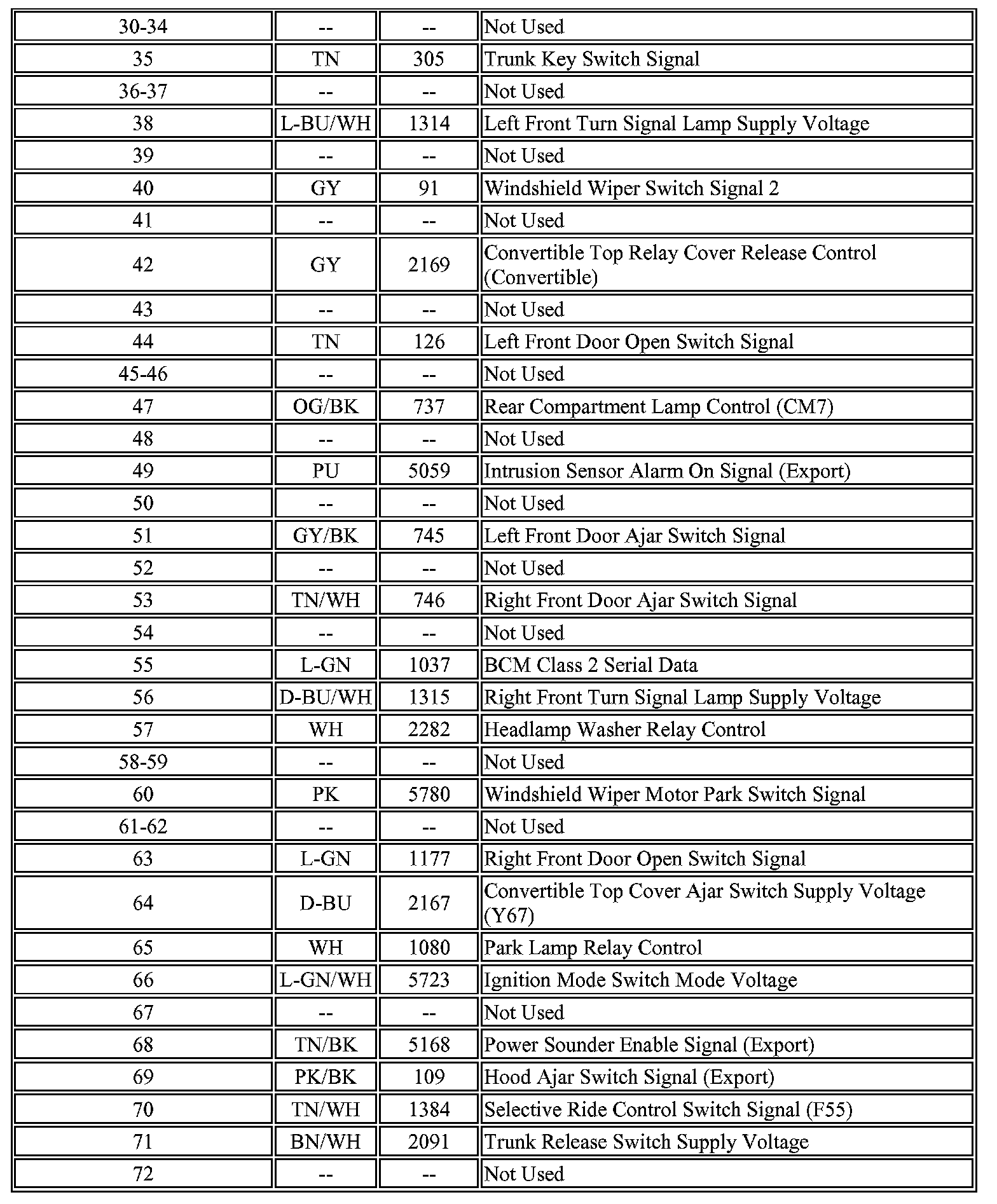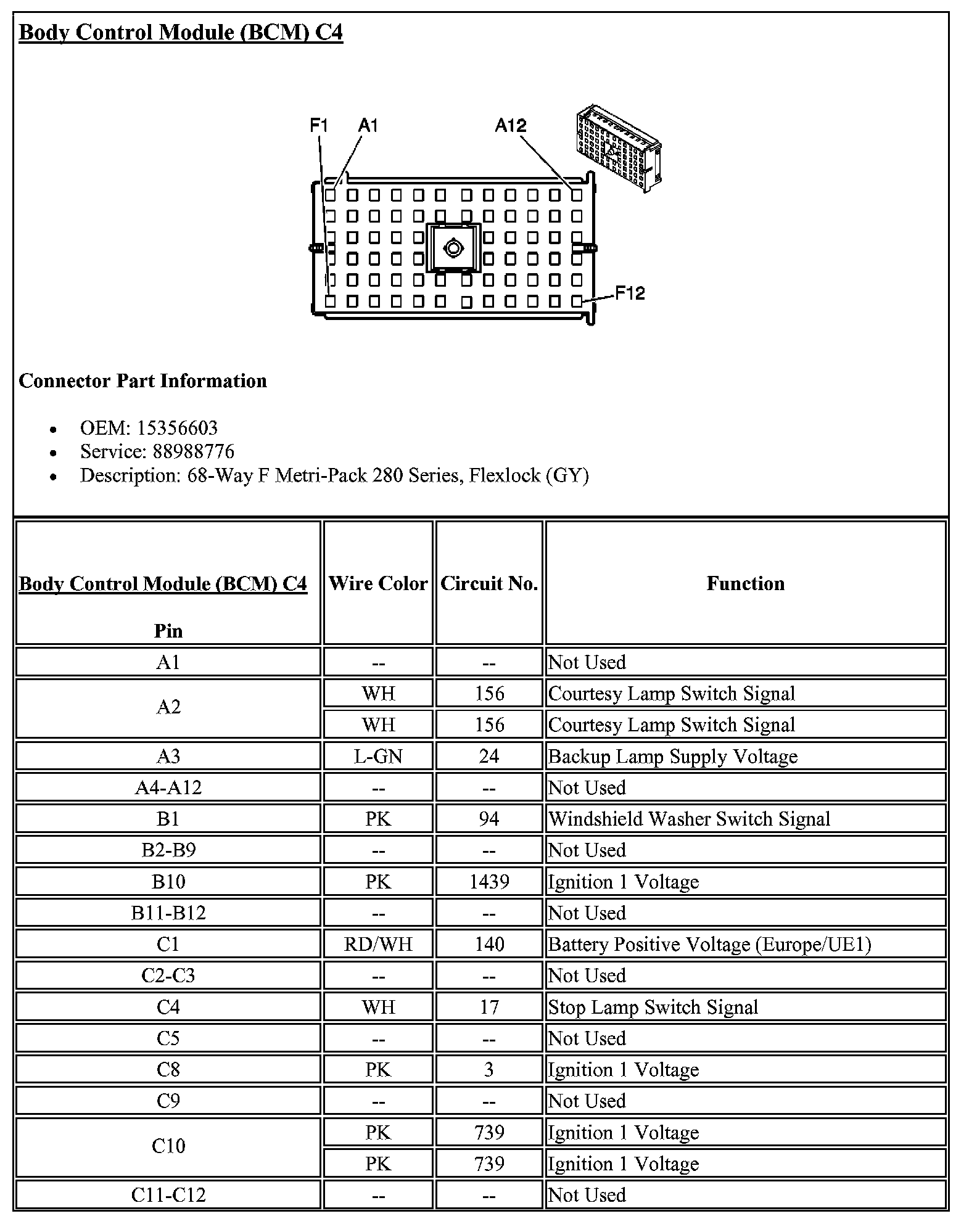 Body Control Module Connector C1 (Part 2):