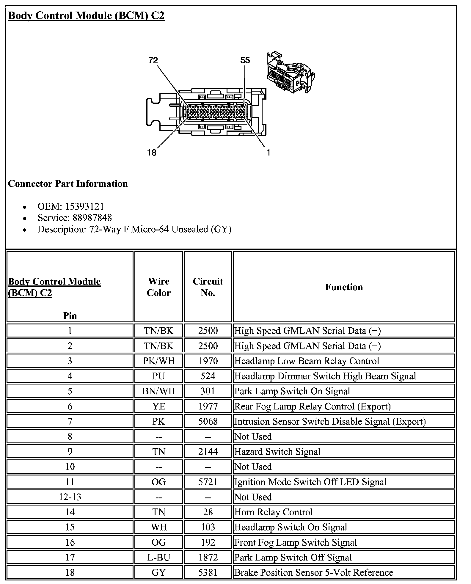 Body Control Module Connector C2 (Part 1):