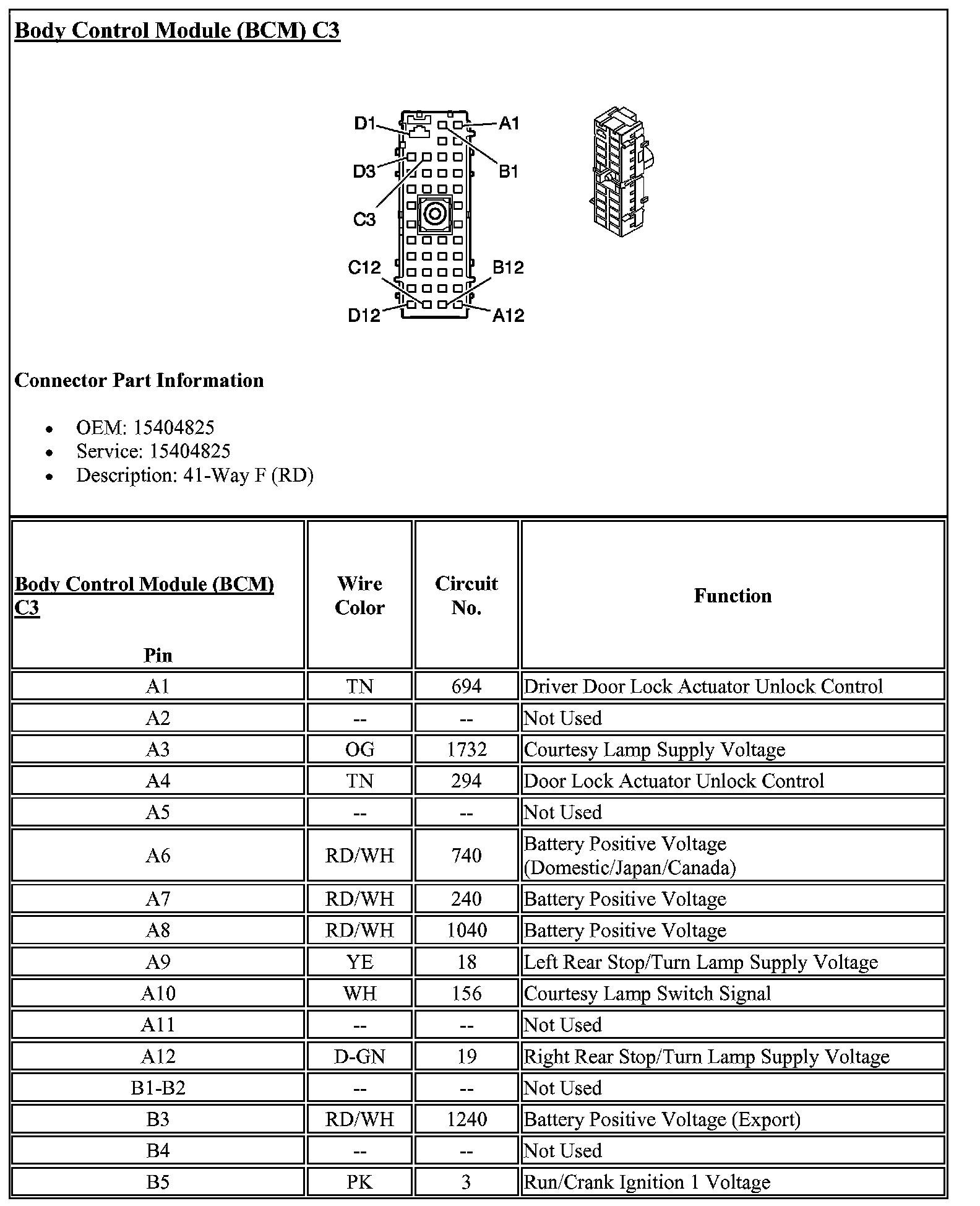 Body Control Module Connector C3 (Part 1):