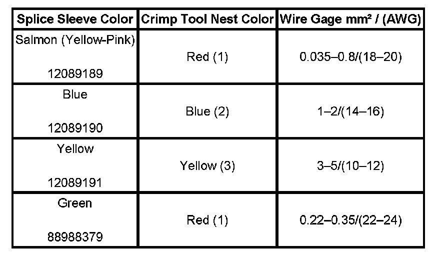 4. Select the proper DuraSeal splice sleeve according to the wire size. Refer to the above table at the beginning of the repair procedure for the color coding of the DuraSeal splice sleeves and the crimp tool nests.