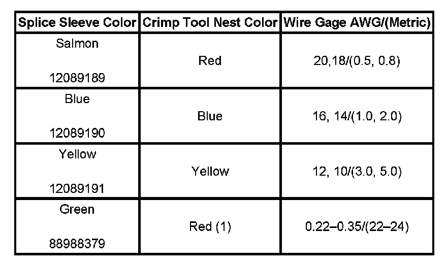 5. Select the proper duraseal splice sleeve (2) and the required crimp nest tool. Refer to the Crimp and Seal Splice Table.