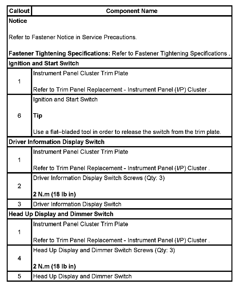 SWITCH REPLACEMENT - IGNITION AND START, DIC DISPLAY AND HUD DIMMER