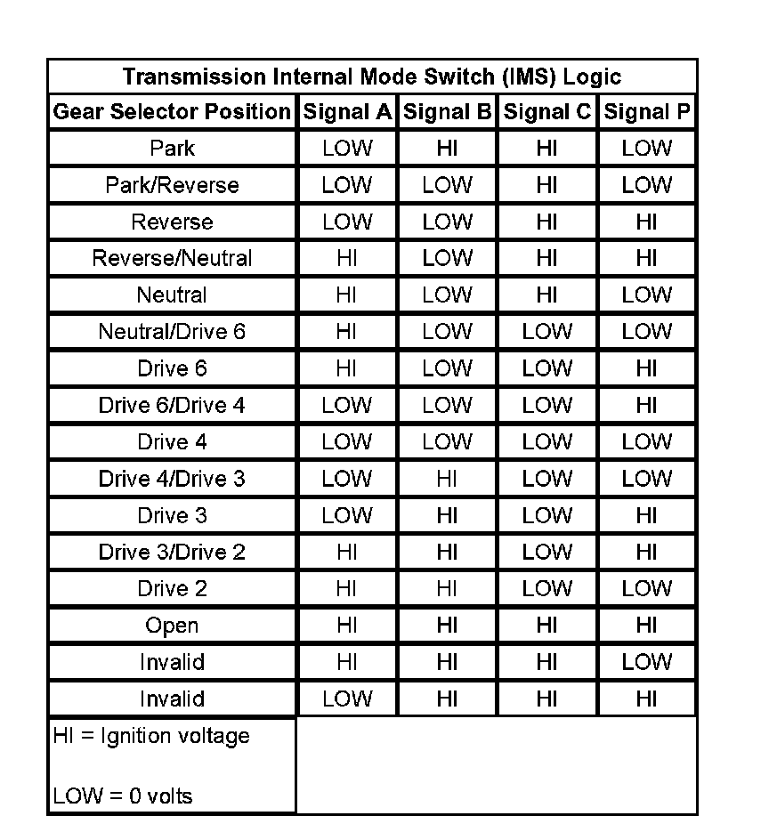 Transmission Internal Mode Switch Logic: