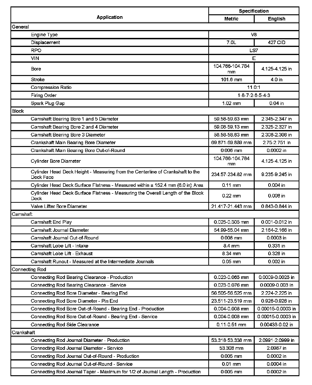 Engine Mechanical Specifications