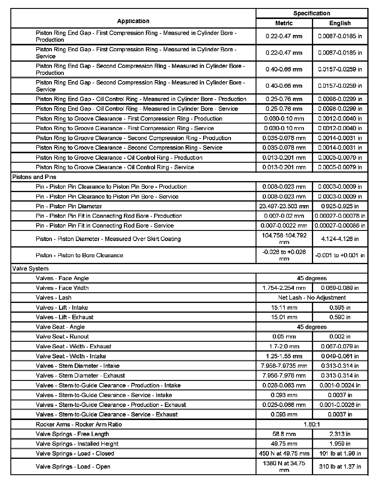 Engine Mechanical Specifications (Part 2):