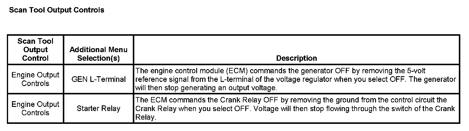 Scan Tool Output Controls: