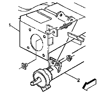 12. Remove the steering column (2) from the vehicle.Rotate the steering column clockwise as the bottom of the steering column reaches the reinforcement assembly. This will allow the telescoping steering column motor and the steering wheel position sensor room to clear the I/P brace.