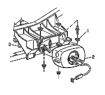 10. Remove the upper steering column bracket nuts from the upper reinforcement assembly (3).