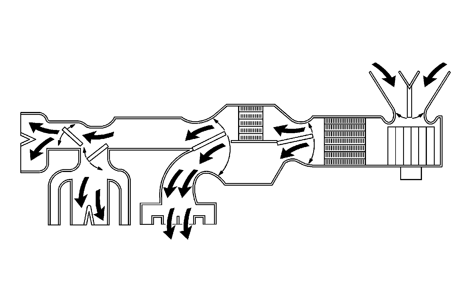 The heater and fan assembly blower regulates the airflow from the air inlet for further processing and distribution.
