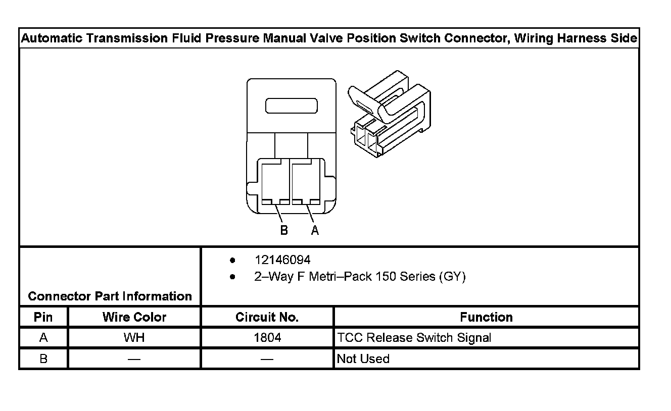 Automatic Transmission Fluid Pressure Manual Valve Position Switch Connector, Wiring Harness Side: