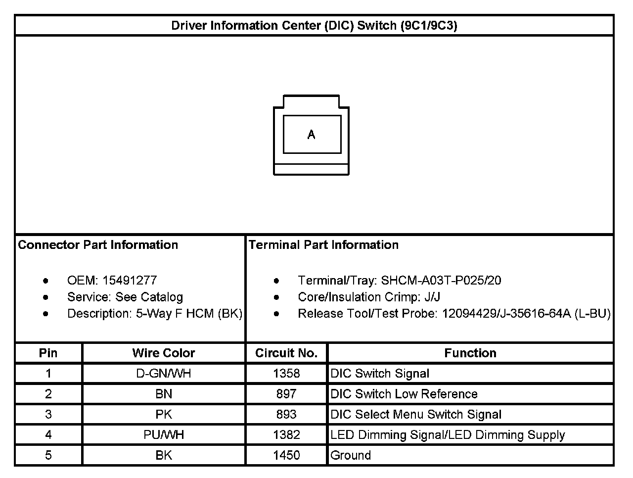 Driver Information Center (DIC) Switch (With RPO Code 9C1/9C3):