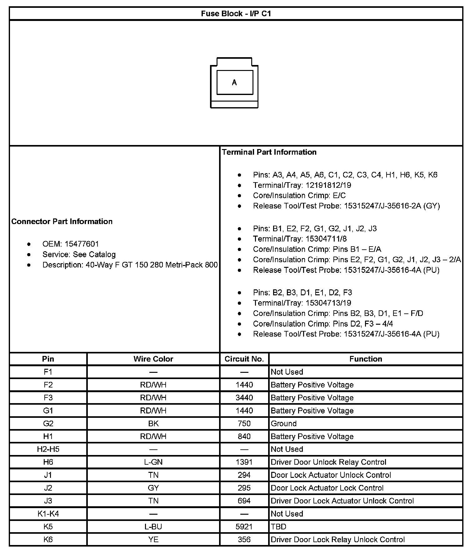 Fuse Block - I/P C1 (Part 2):