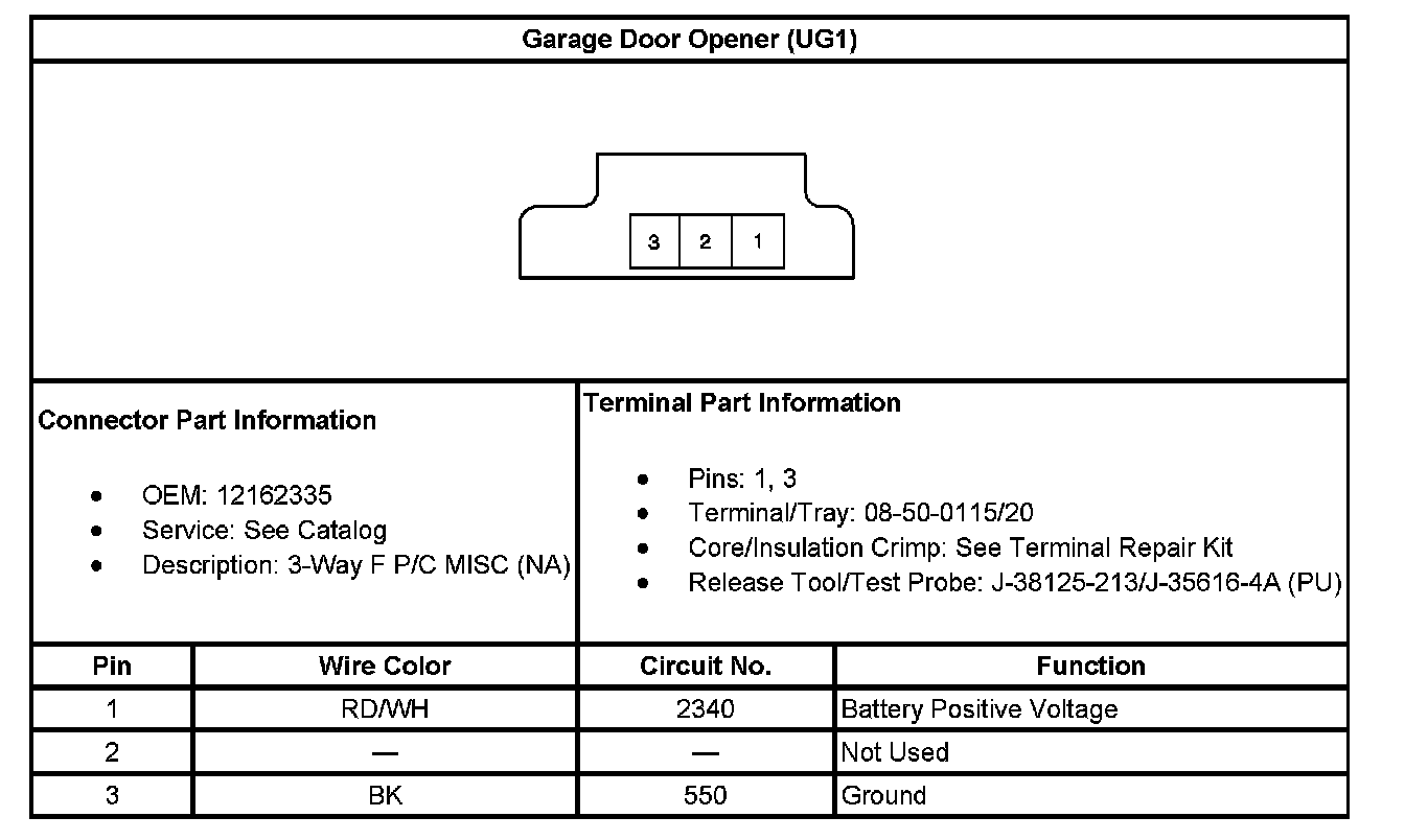 Garage Door Opener (With RPO Code UG1):