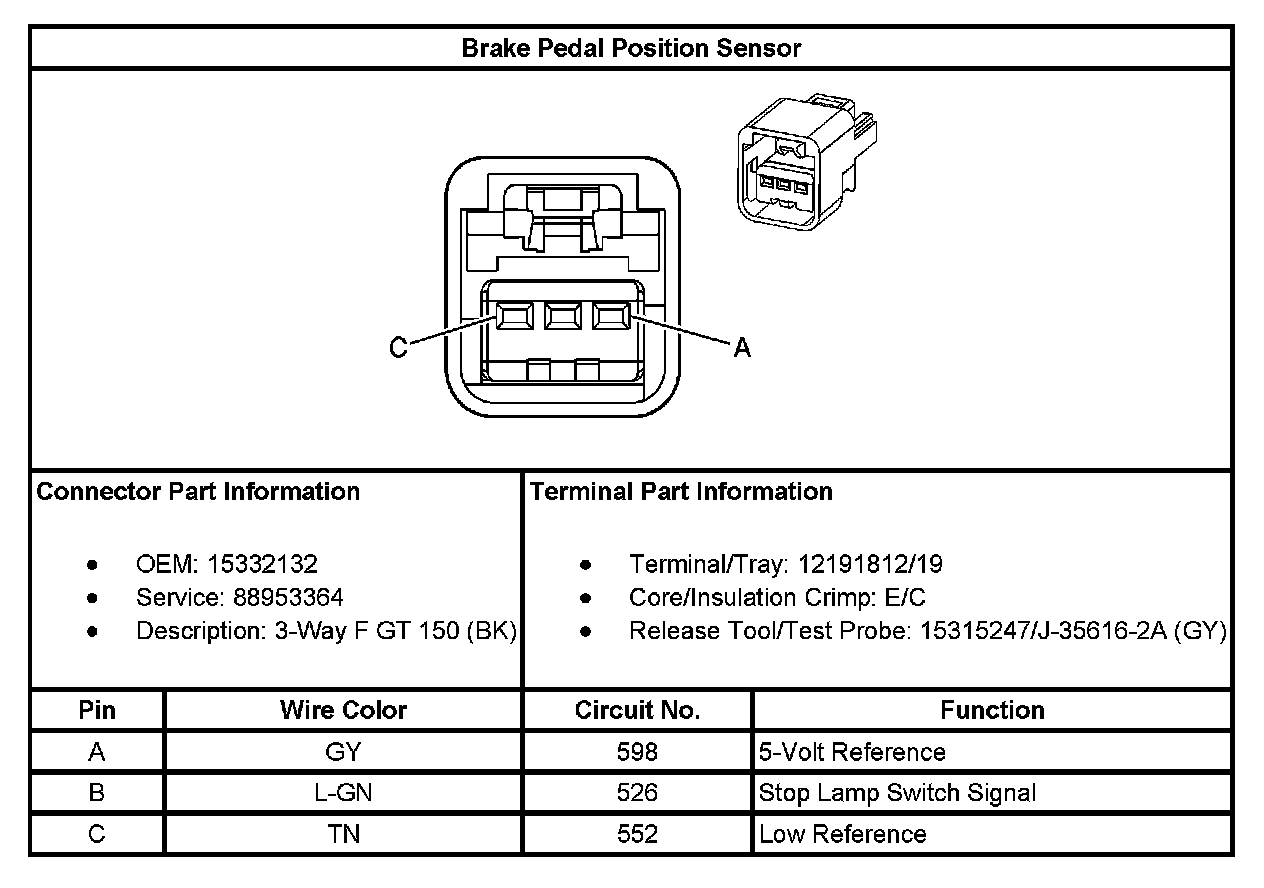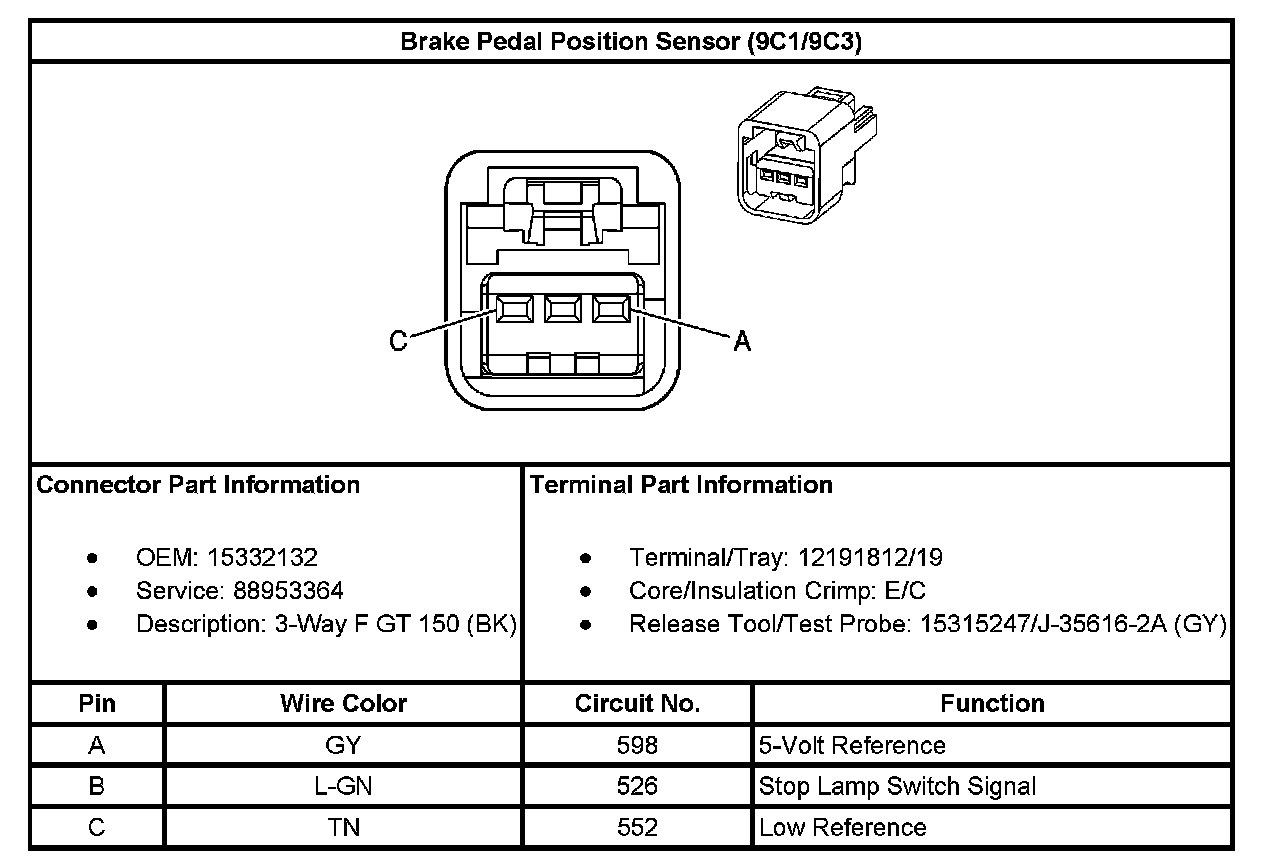 Brake Pedal Position Sensor (With RPO Code 9C1/9C3):
