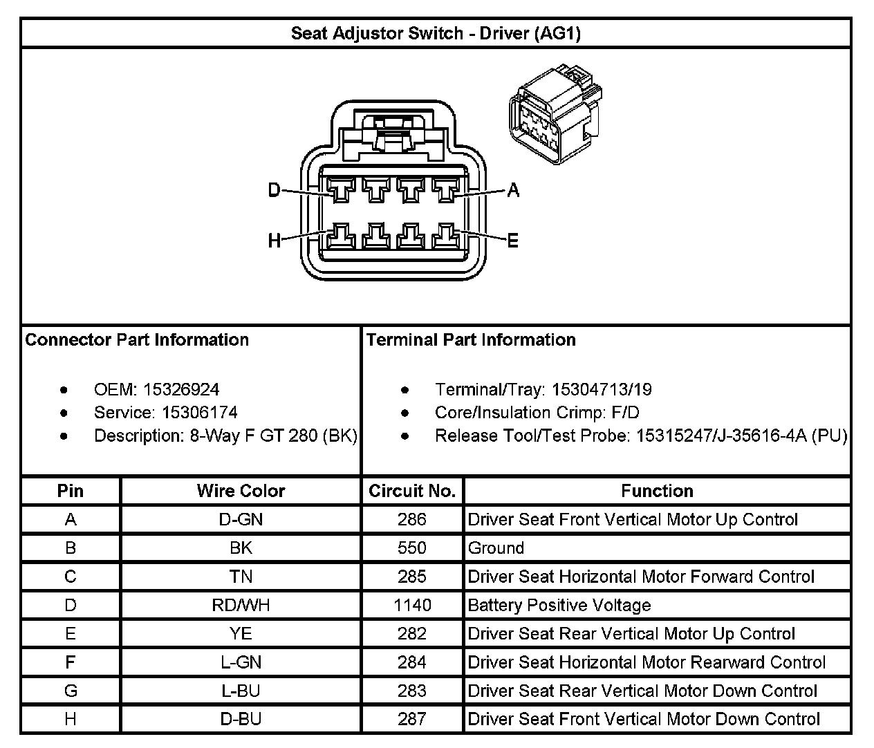 Seat Adjustor Switch - Driver (With RPO Code AG1):