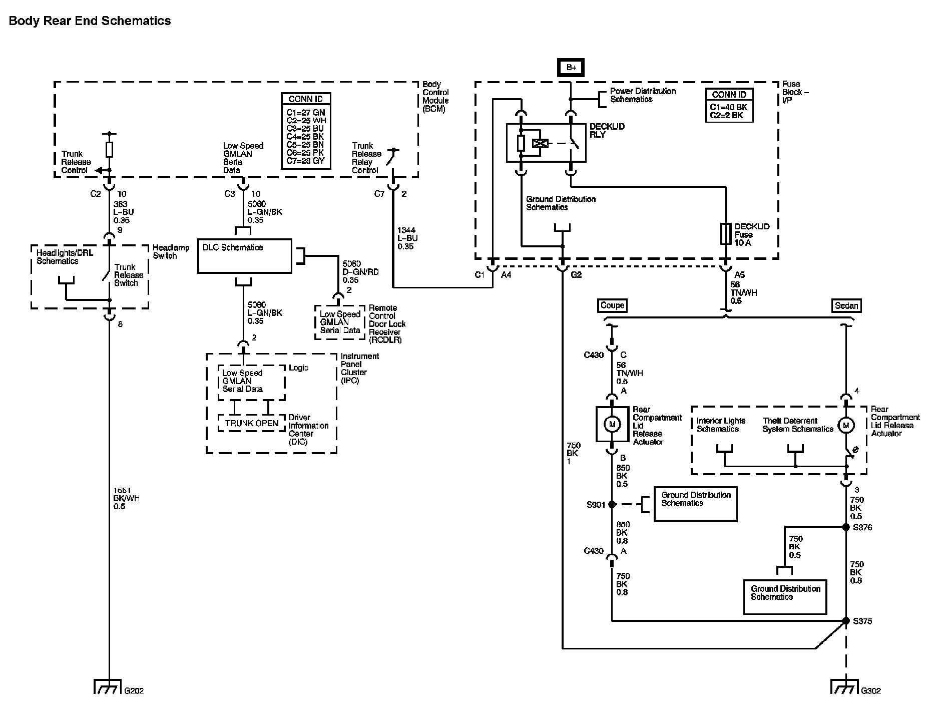 The locations for the Connectors, Grounds, Splices, and Grommets shown within these diagrams can be found via their numbers at Vehicle Locations.