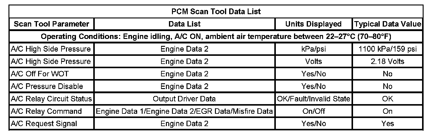 The scan tool data values were taken from a known good vehicle under the following conditions: