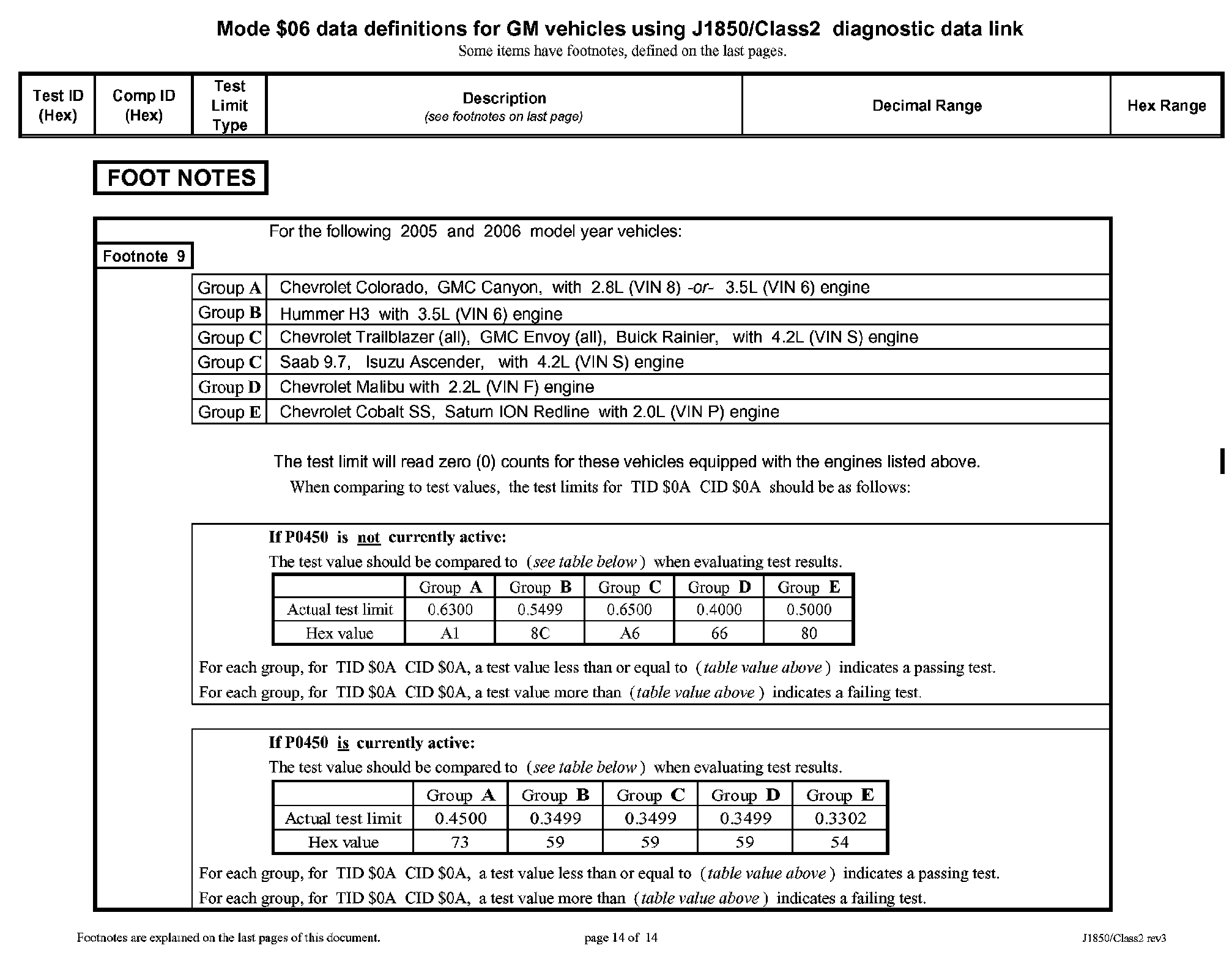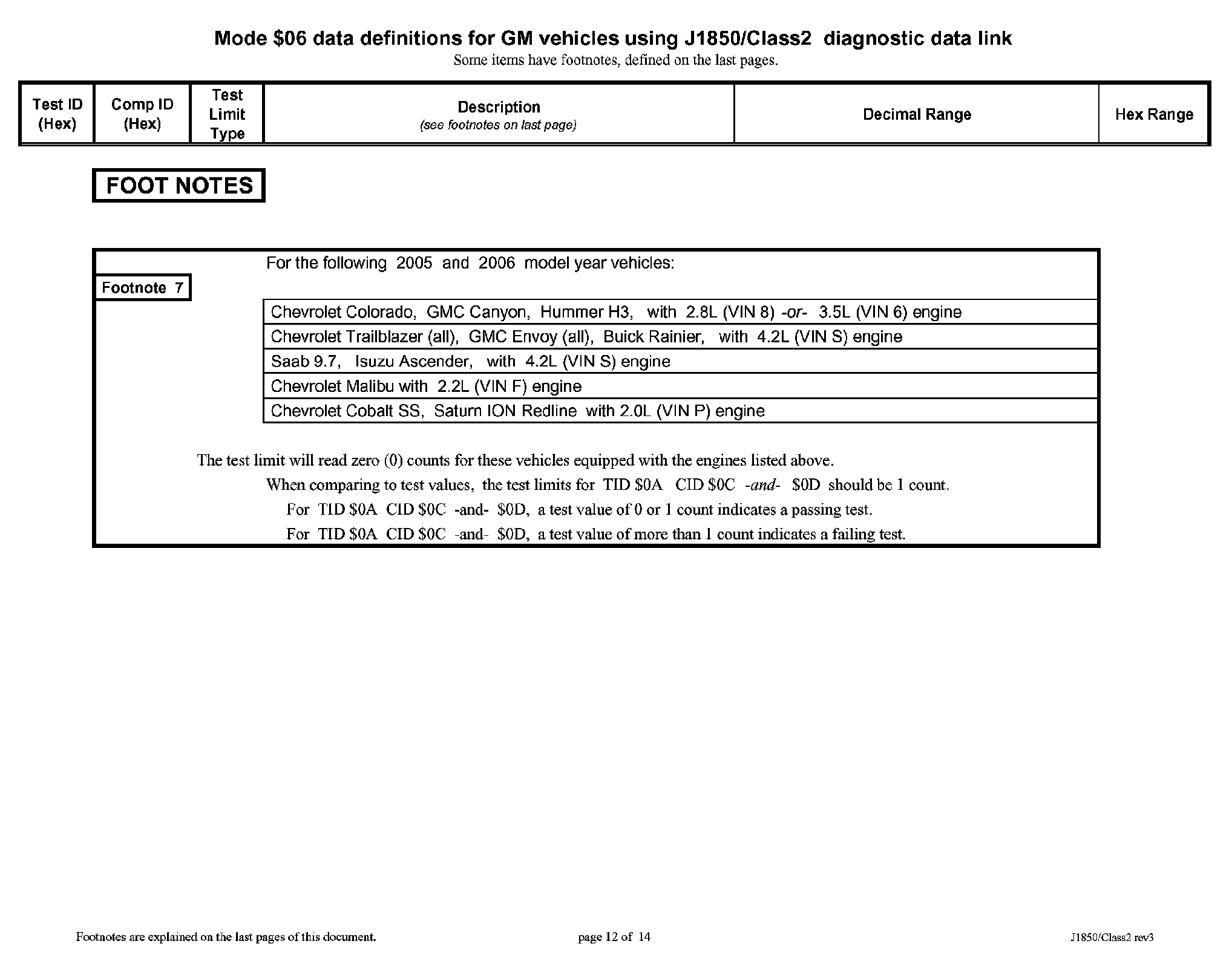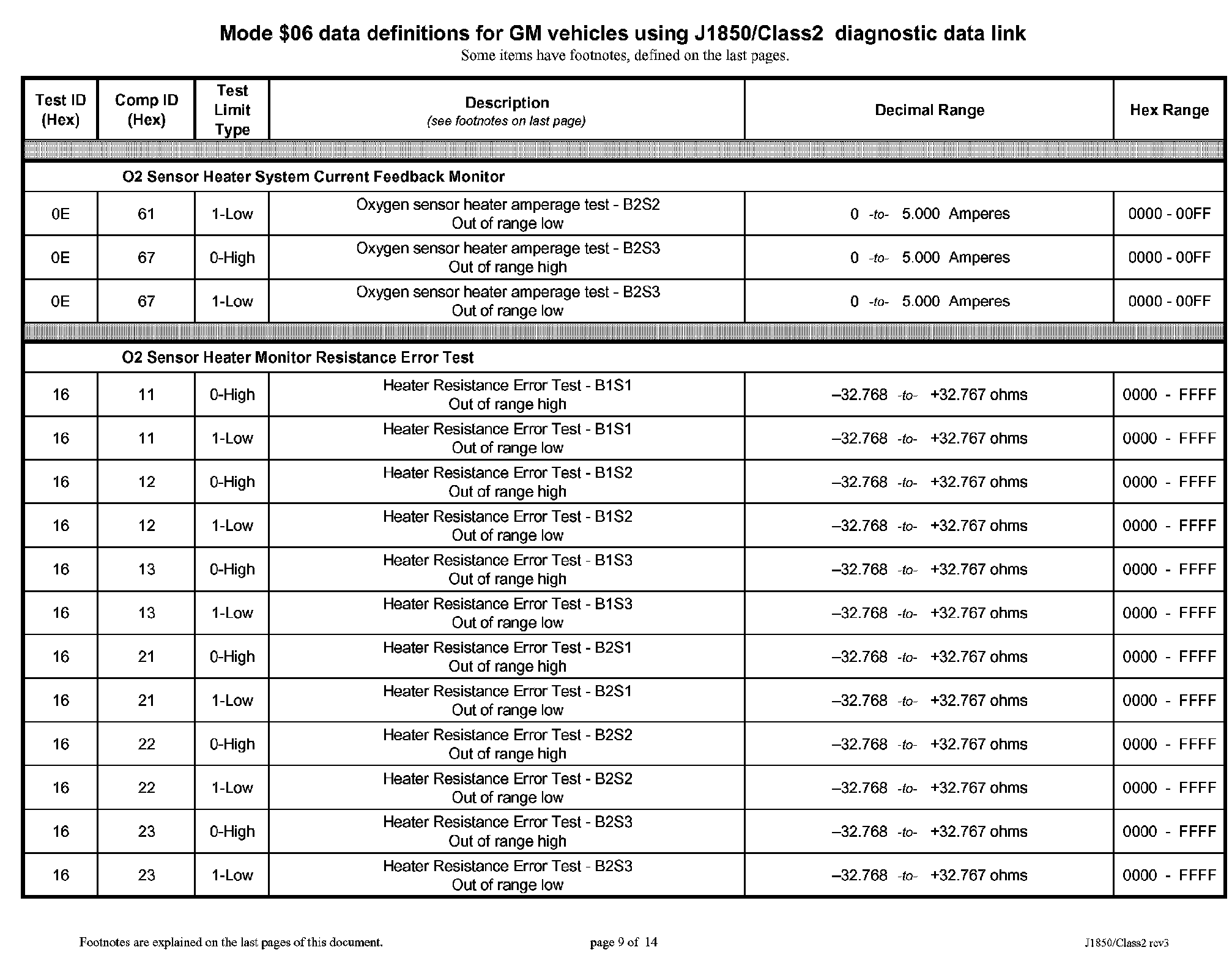 Mode $06 Data Vehicles With Class 2 Diagnostic Data Link