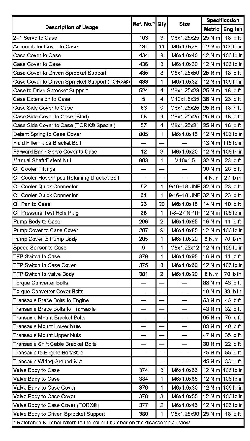 Fastener Tightening Specifications: