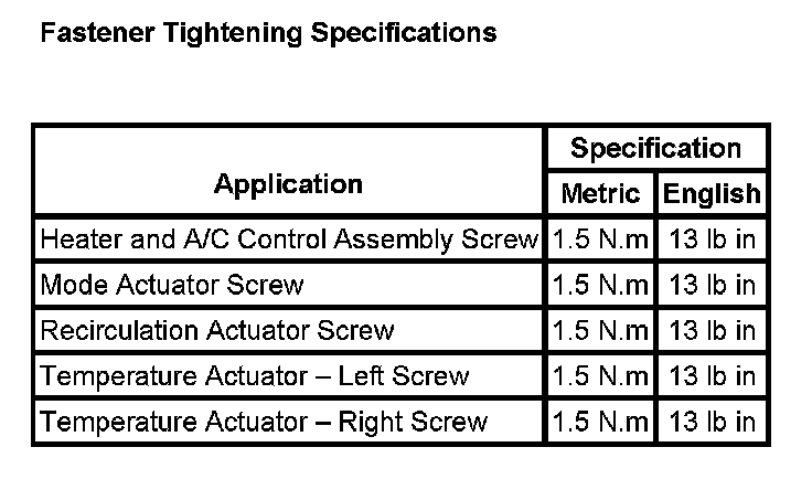 Fastener Tightening Specifications: