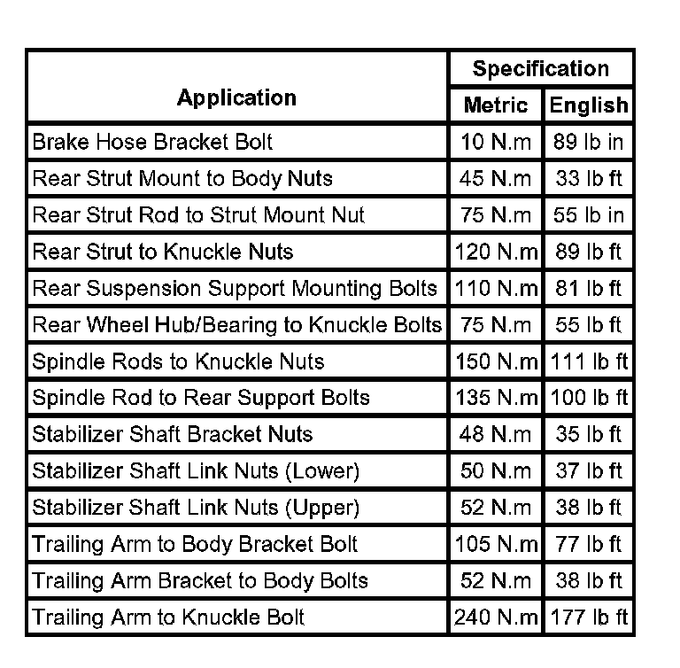 Fastener Tightening Specifications: