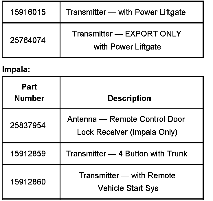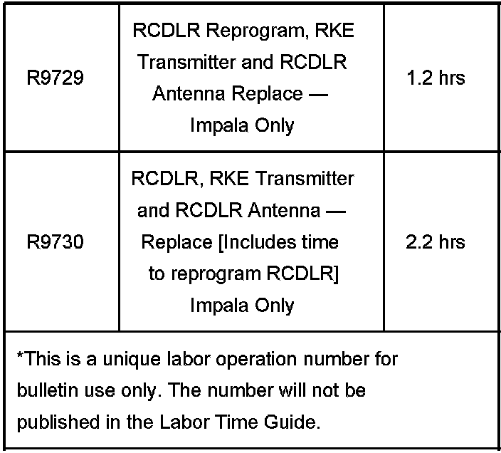 IMPALA ONLY - the RCDLR antenna MUST be replaced. Use the following procedure to complete the RCDLR antenna replacement. The 2006 and 2007 Impala LS without AP8 does not have a coax antenna.
