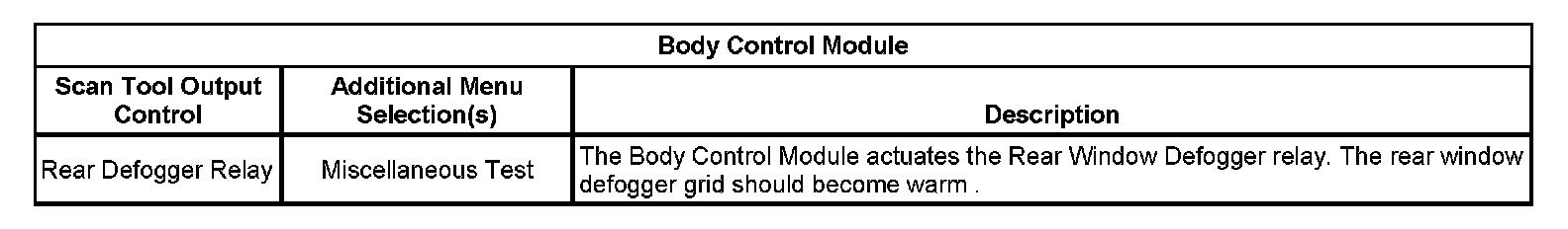 Body Control Module Menu:
