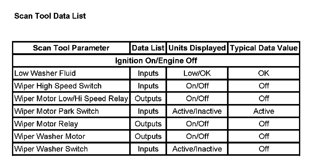 Scan Tool Data List:
