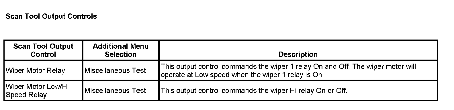 Scan Tool Output Controls: