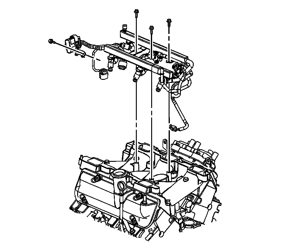 12. Inspect the fuel rail, fuel injectors and fuel injector O-rings for damage and replace, as necessary.