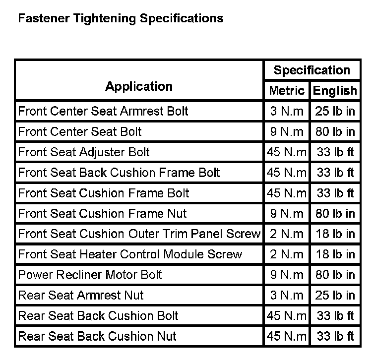 Seats: Specifications