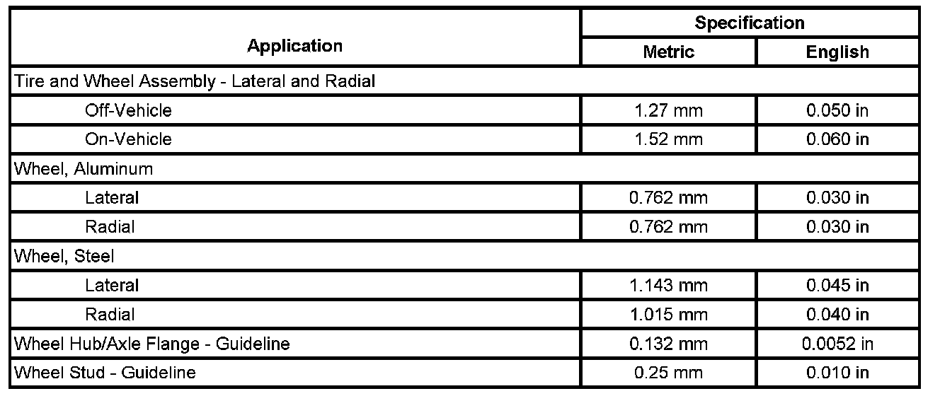 Tire and Wheel Runout Specifications
