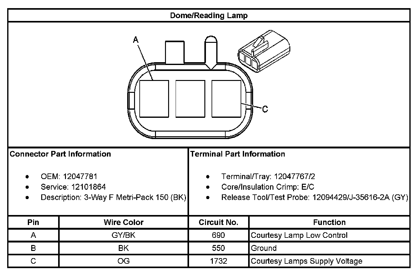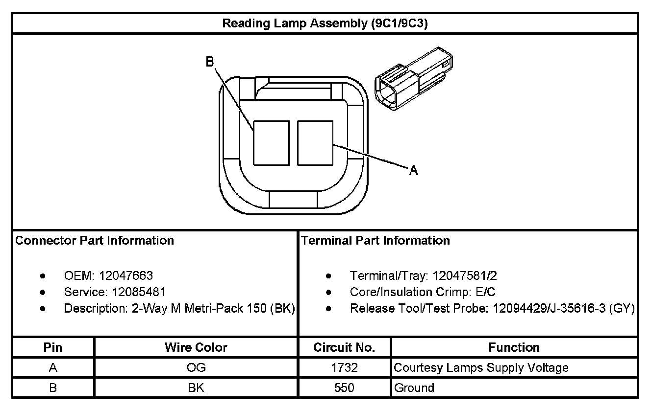 Reading Lamp Assembly (With RPO Code 9C1/9C3):