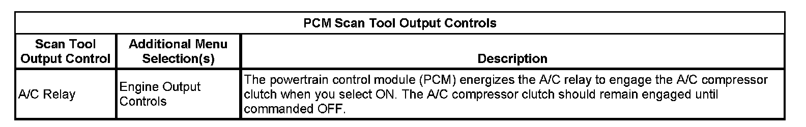PCM Scan Tool Output Controls:
