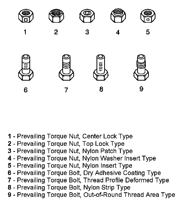 These fasteners accomplish the thread interface by the presence of a thread-locking compound on the fastener threads. Refer to the appropriate repair procedure in order to determine if the fastener may be reused and the applicable thread-locking compound to apply to the fastener.