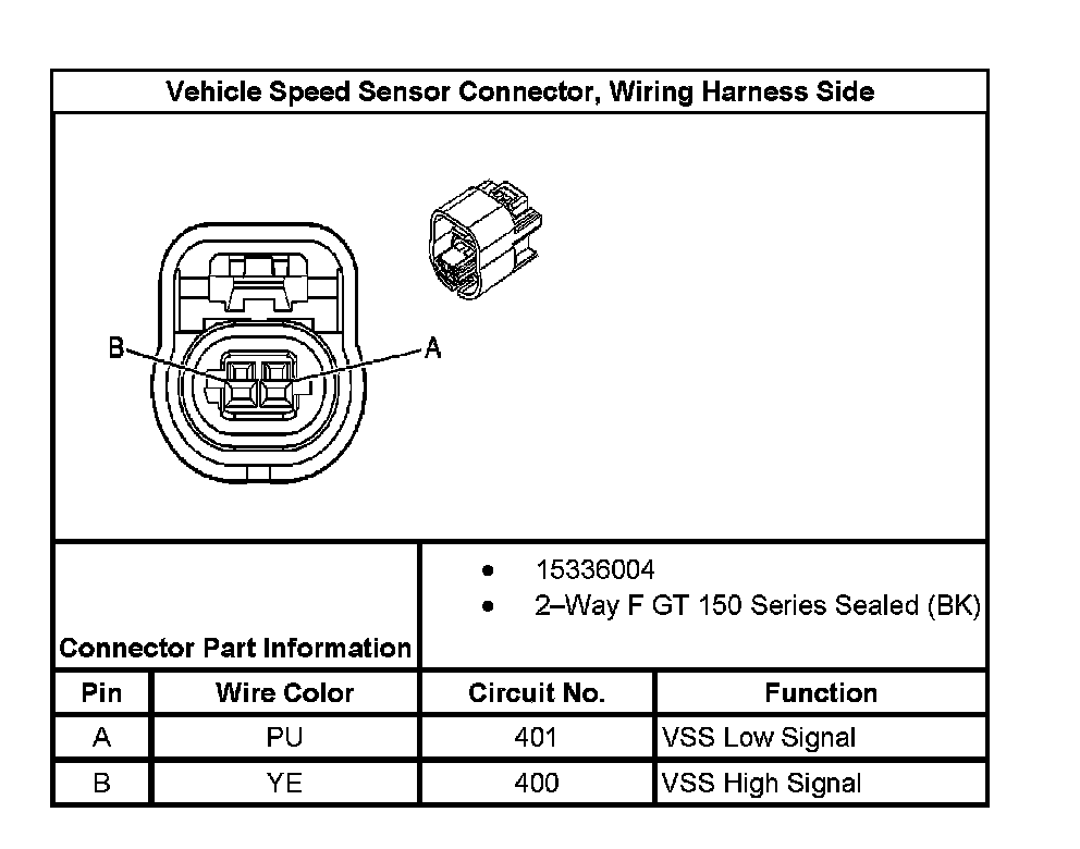 Vehicle Speed Sensor Connector, Wiring Harness Side: