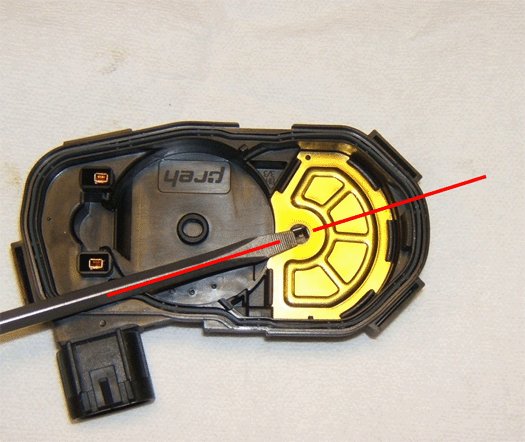• If the TP sensor drive slot orientation is not aligned as shown, use a small flathead screwdriver to gently rotate the TP sensor drive slot clockwise to the wide open throttle (WOT) position as shown.