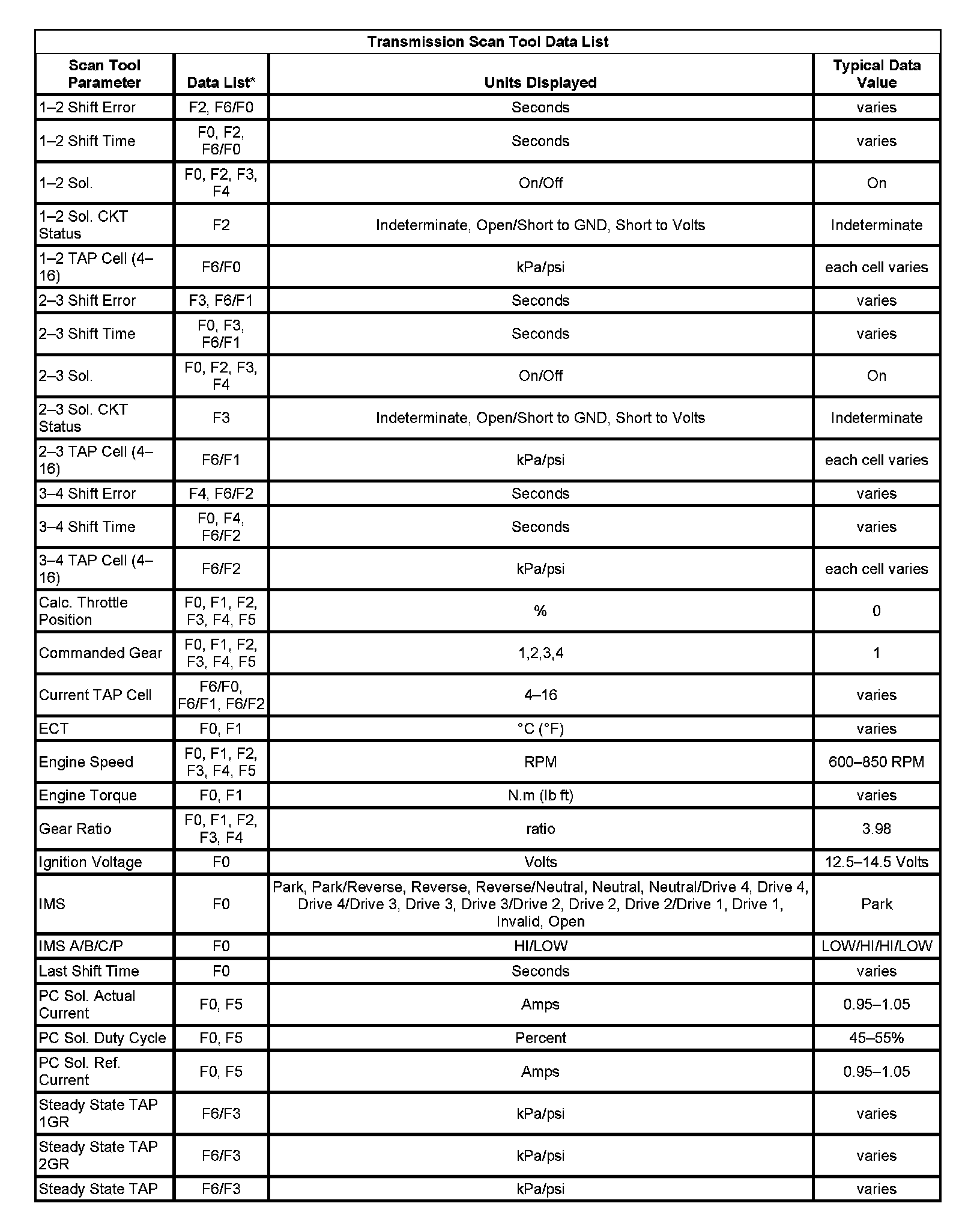Only the parameters listed below are used in this information for diagnosing. If a scan tool displays other parameters, the values are not recommended by General Motors for use in diagnosis.