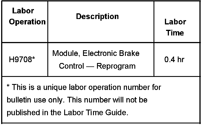 To enhance the antilock brake performance, technicians are to reprogram the electronic brake control module with an updated software calibration. These new service calibrations were released with TIS satellite data update version 11.0 available October 31, 2005. As always, make sure your Tech 2(R) is updated with the latest software version.