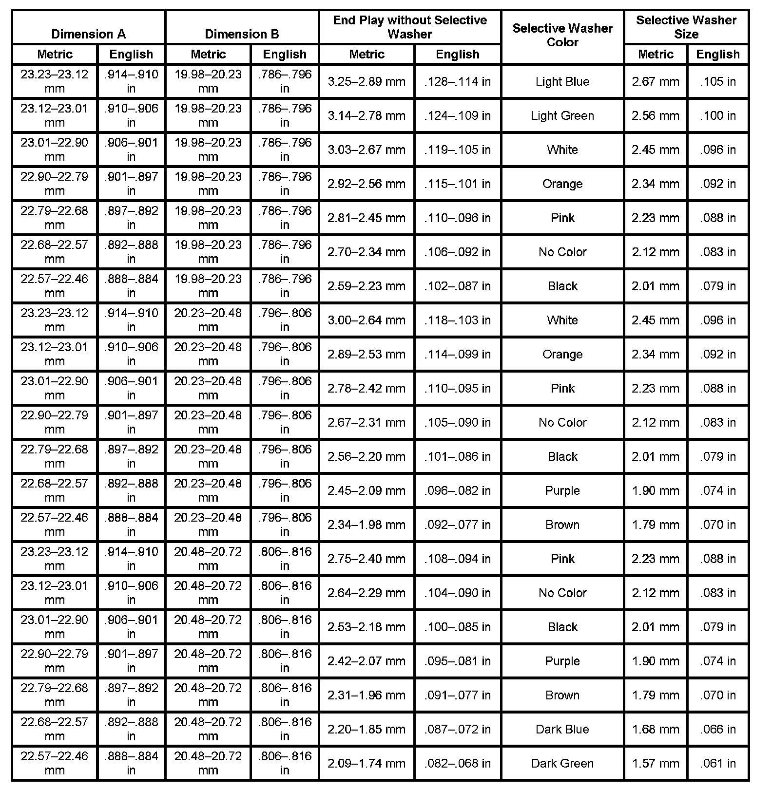 Transfer Case Selective Washer Specifications:
