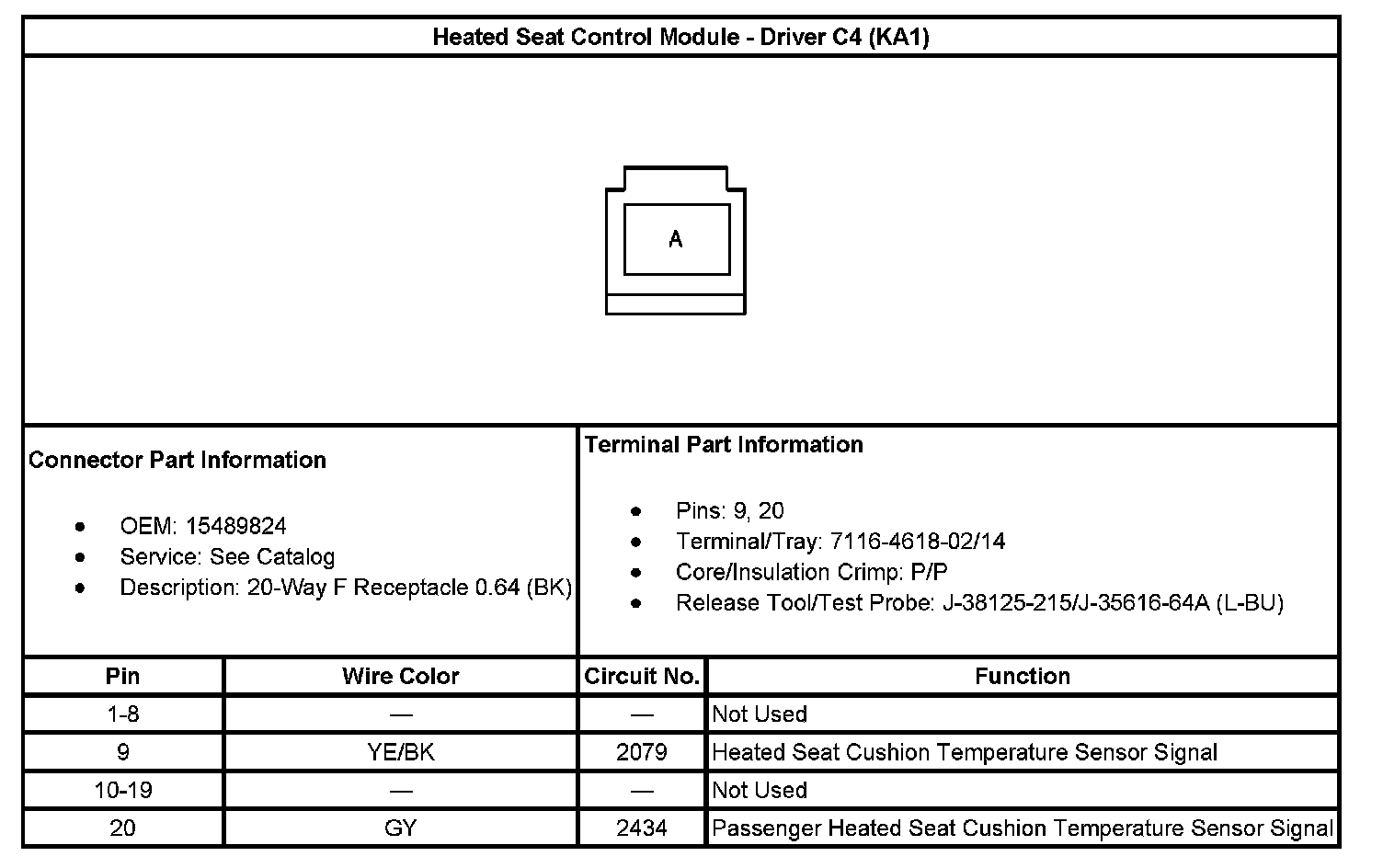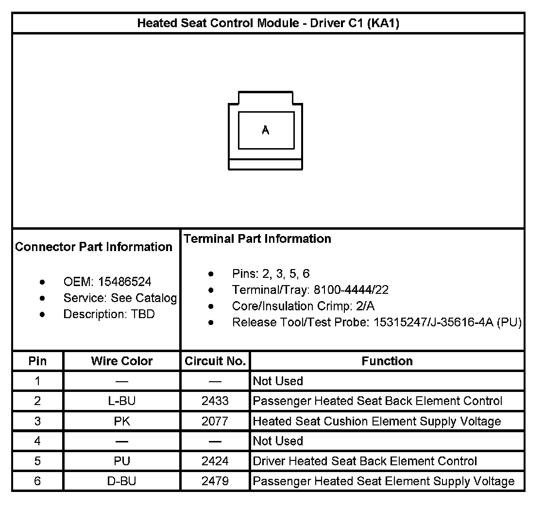 Heated Seat Control Module - Driver C2 (With RPO Code KA1):