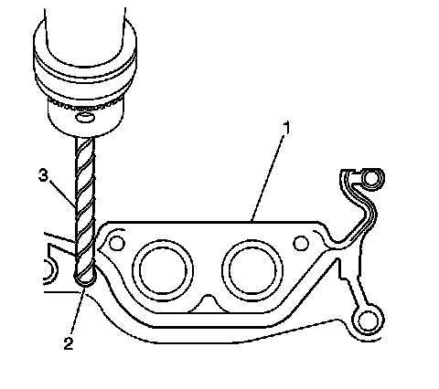 Drill (3) out the oil pan gasket retaining rivets (2), if required.