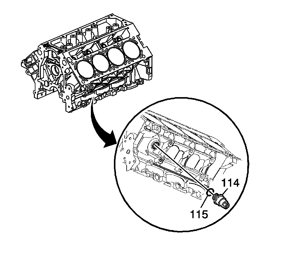 7. Inspect the O-ring seal of the rear oil gallery plug. If the O-ring seal is not cut or damaged, the plug and O-ring seal may be used during assembly.