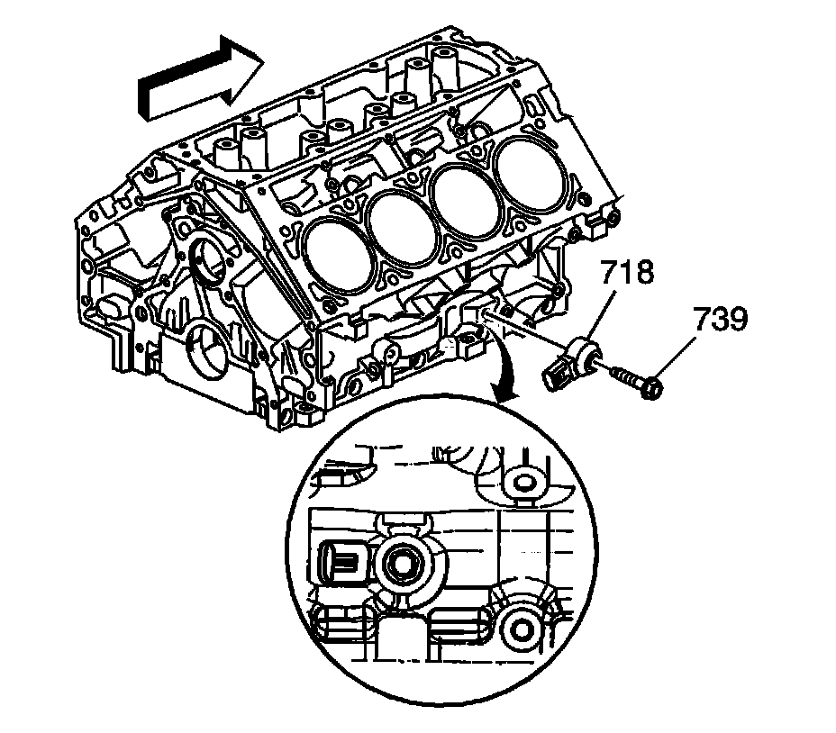 9. Remove the left side knock sensor (718) and bolt (739).