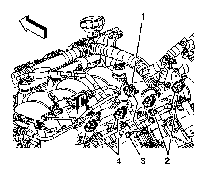 11. Connect the fuel injector electrical connectors (2, 4).