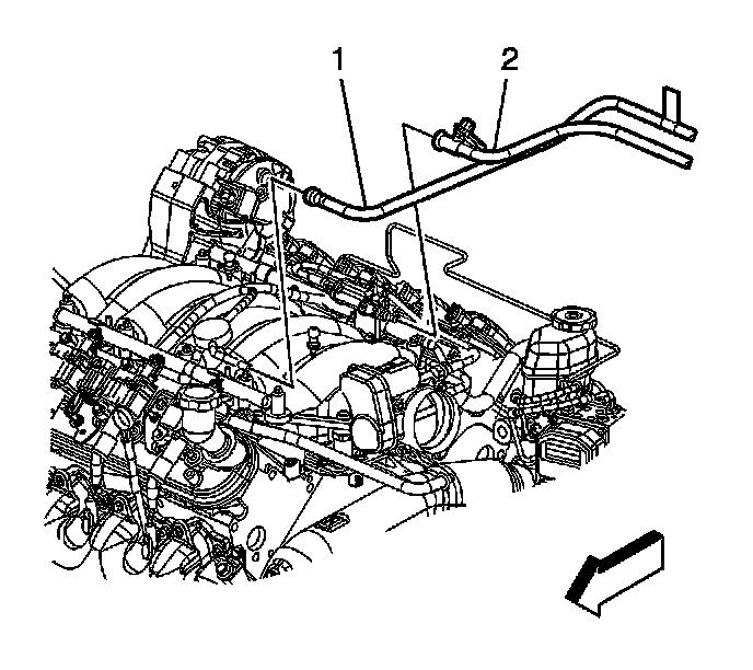 12. Disconnect the fuel feed (1) and EVAP (2) lines.