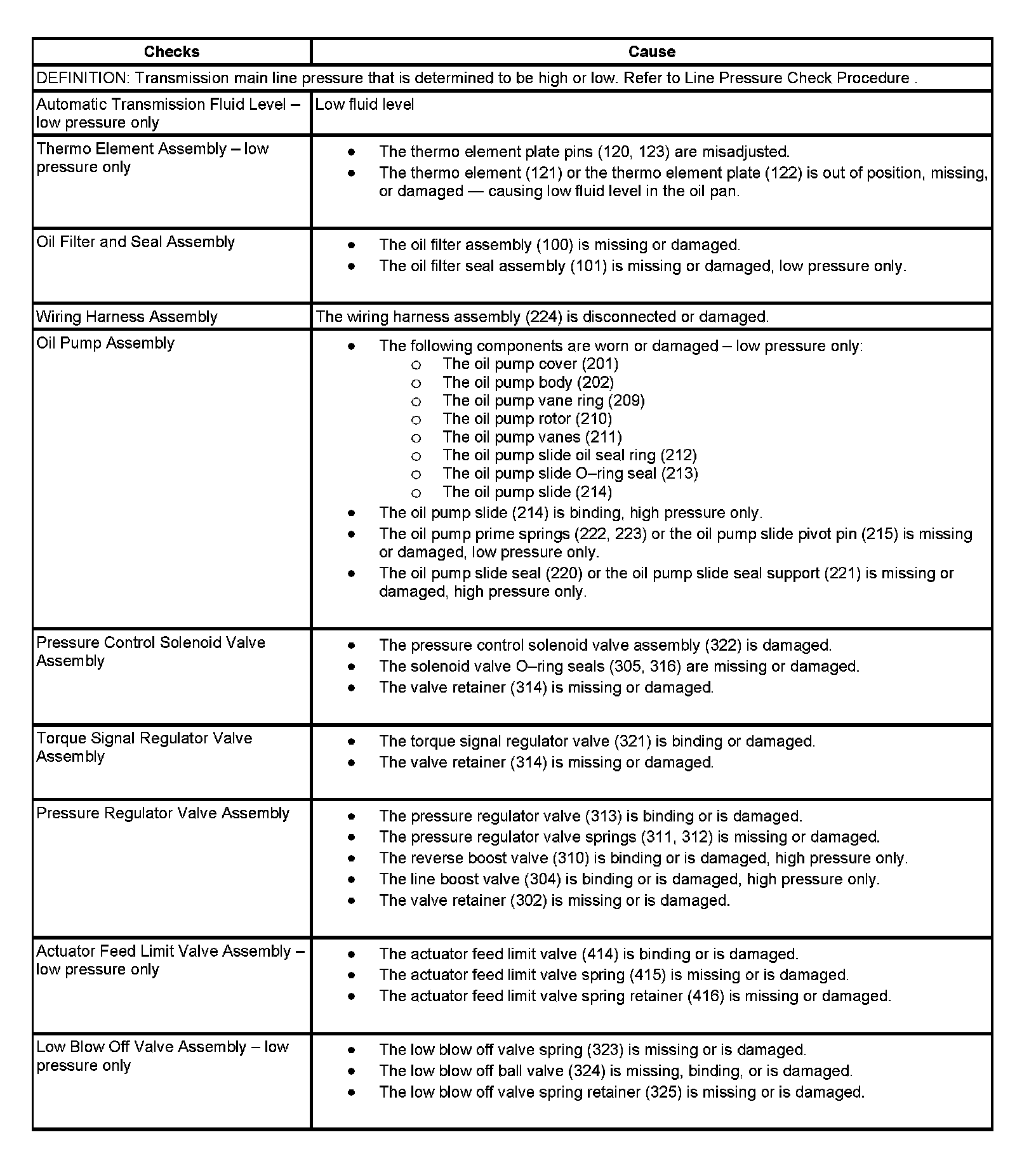 Incorrect Line Pressure: