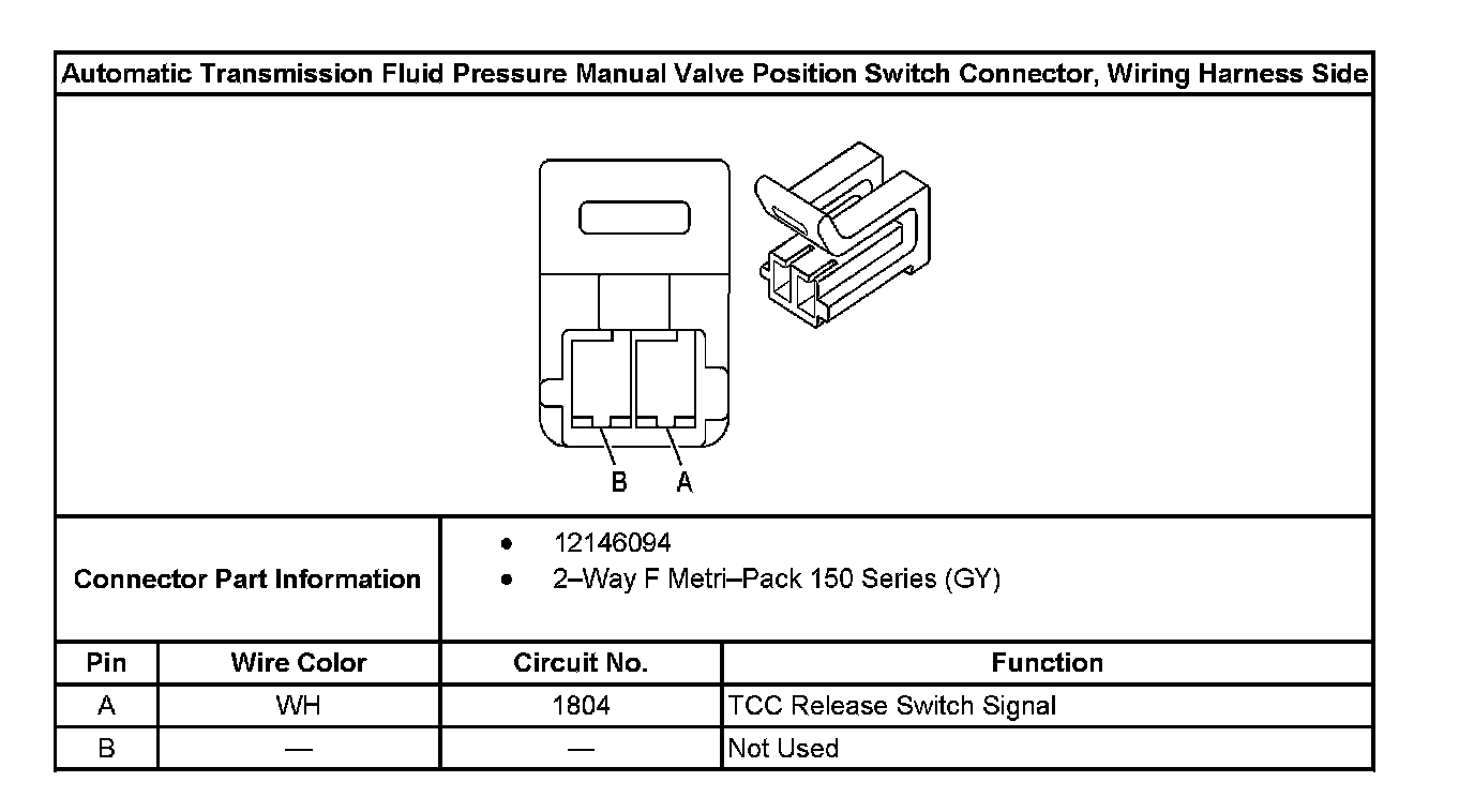 Automatic Transmission Fluid Pressure Manual Valve Position Switch Connector, Wiring Harness Side: